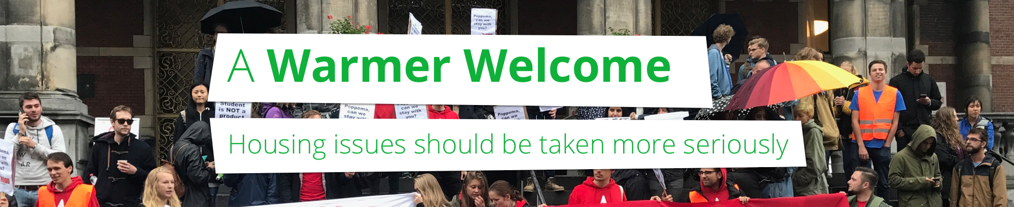 However, this problem is obviously also the problem of our university. It is irresponsible to welcome internationals to Groningen but at the same time not being able to support them in finding a living space. The University of Groningen can only live up to her international ambitions when she is a good host for all of her incoming students.